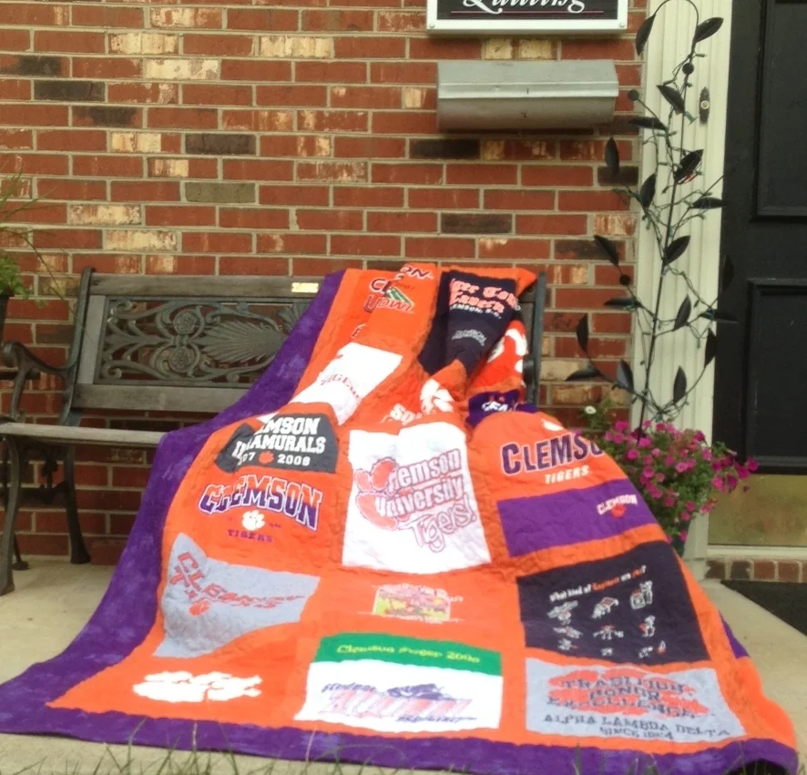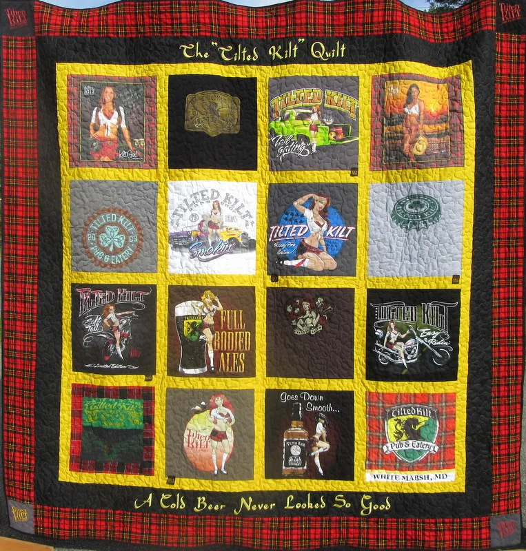 I wanted to thank you again for making the t-shirt quilt for our co-worker fighting cancer in such a short time. He was speechless (which is rare)! It speaks volumes and it has received many awesome reviews. I am including a picture with Billy and the quilt (he wanted it covering him) and a picture we took prior to giving it to him.
